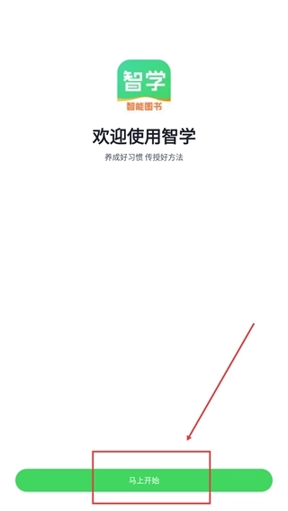 2、进入【智学】的欢迎界面后,查看“养成好习惯-传授好方法”的提示内容,点击【马上开始】按钮进入后续操作步骤。