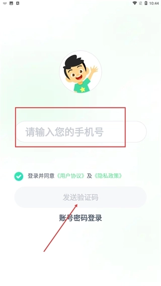 4、按顺序填写【请输入您的手机号】和【请输入密码】,确认勾选协议后,点击【登录】按钮,即可完成账号登录操作。