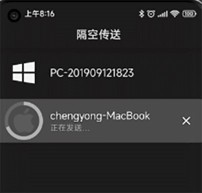 用户也能在手机自带的文件管理中点击发送,然后在应用列表里选择隔空传送。