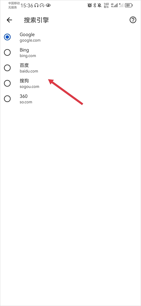最后在选择列表中,切换至您想要使用的搜索引擎即可。