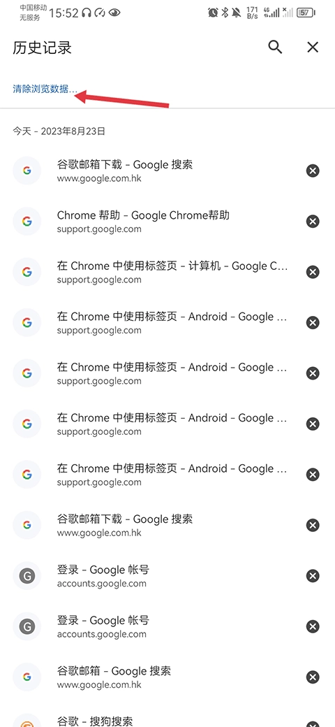 3、进入历史记录页面后,点击左上角的“清除浏览数据”选项