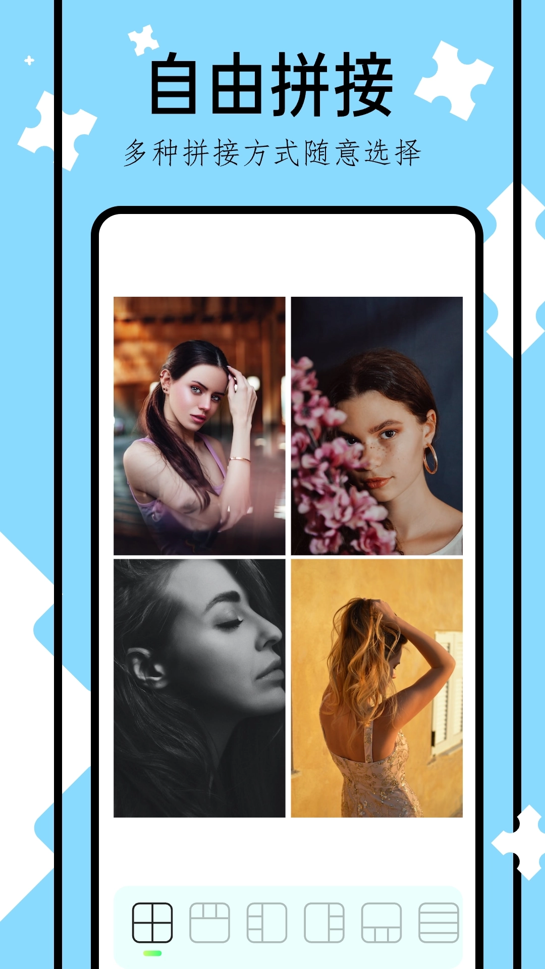 3、选择自己喜欢的风格,导入照片,进行拼图设计。