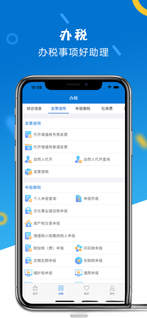 2. 涵盖企业开业登记、增值税/所得税申报、电子发票开具、社保缴费等功能,个人用户与企业用户均可在同一平台完成大部分常规税务事务。