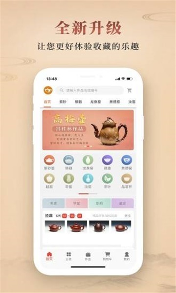 呈现丰富且全面的关于宜兴紫砂壶、瓷器、建盏、银壶、铜器领域的名家、大师资讯以及他们的作品。