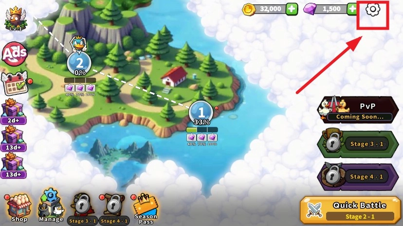 1. 开启什么鸭游戏,完成教程后,进入主页面,点击右上角的设置。