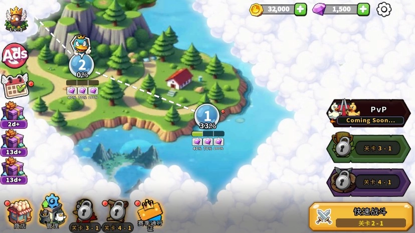 1. 打造属于你的鸭子战队,从平凡的小鸭到实力强劲的英雄鸭,每一种鸭子都具备独一无二的技能。瞧它们一摇一摆奔赴战场的模样,实在是格外治愈。