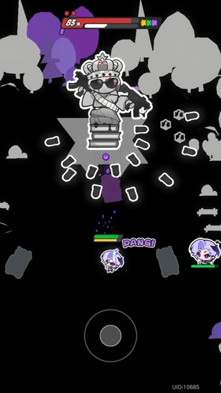 3、该游戏运用竖屏弹幕射击模式,玩家需要操控角色避开敌人的攻击,同时对关卡中的敌人进行射击。