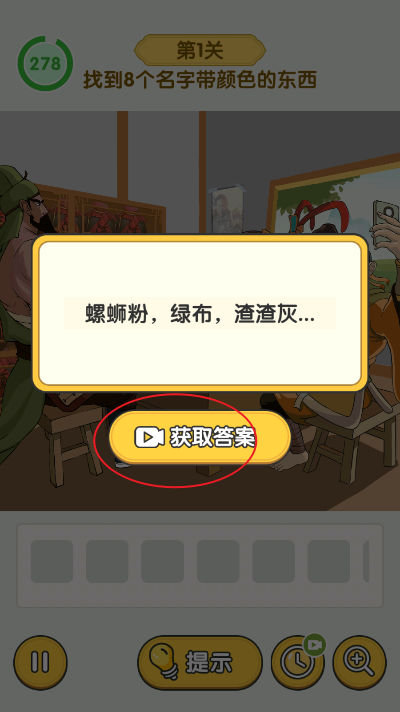 6、要是实在没办法闯关成功,还能使用提示功能,该功能是免费的。