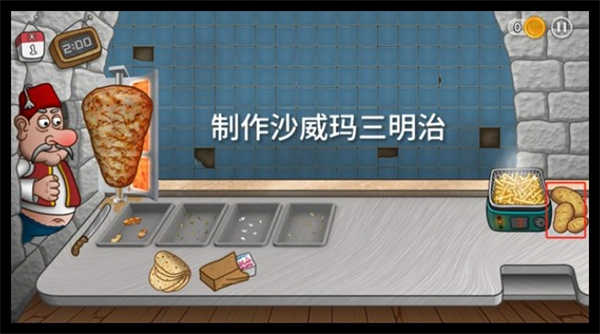 5. 标准卷饼步骤:按照顺序往饼皮上添加食材,确保味道搭配和谐,整体结构紧实,从而制作出正宗的沙威玛。 6. 达成交易获取收益:把做好的沙威玛装袋后递给顾客,通过这笔交易赚取金币,这些金币将用于餐厅的拓展与发展。