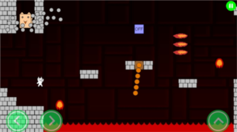 猫里奥自制版这款游戏,其玩法借鉴了经典的超级马里奥。然而,猫里奥把挑战难度提升到全新层次,无时无刻不在考验你的反应与判断能力。游戏里的陷阱多得令人胆寒:有隐藏着的导弹、会意外塌陷的地面、突然掉落的石头,还有那些看似安全实则是死胡同的地方,只要稍有疏忽,就只能重新开始!特别要指出的是,猫里奥设置了检查点,玩家碰到蓝色小旗后,失败时便能快速复活,无需再从头玩起,大大减少了烦恼。