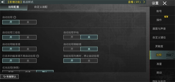 我把“左手开火”设置成总是开启状态。原因很简单,右手负责瞄准,左手负责开火,这样操作起来感觉特别舒服。一般来说,习惯用右手的人都可以这么设置。要是习惯用左手,那就反过来。至于陀螺仪和拾取列表的设置,就看个人喜好了。