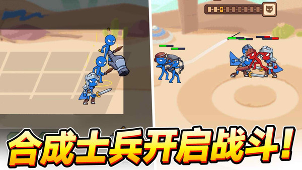 玩家需挑选恰当的火柴人勇士投身战场,成功击败敌人便可取胜。