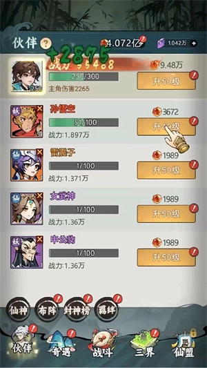 这款游戏里有好几百个神话角色,玩家得灵活组合这些角色,力求打造出一套强力阵容,这样在闯关时就能占据不小的优势。