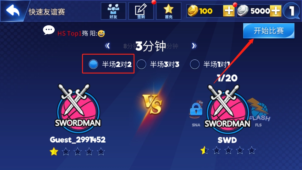 玩家可以根据自己的喜好挑选场次,接着点击【开始比赛】;