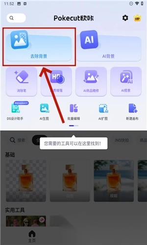 2. 打开软件后,点击所需功能即可使用,在此以点击“去除背景”功能为例。
