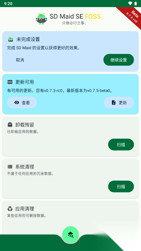 1、于本站下载并安装好SD Maid SE,安装完成后运行程序,随即进入主界面,该界面布局简洁清晰。