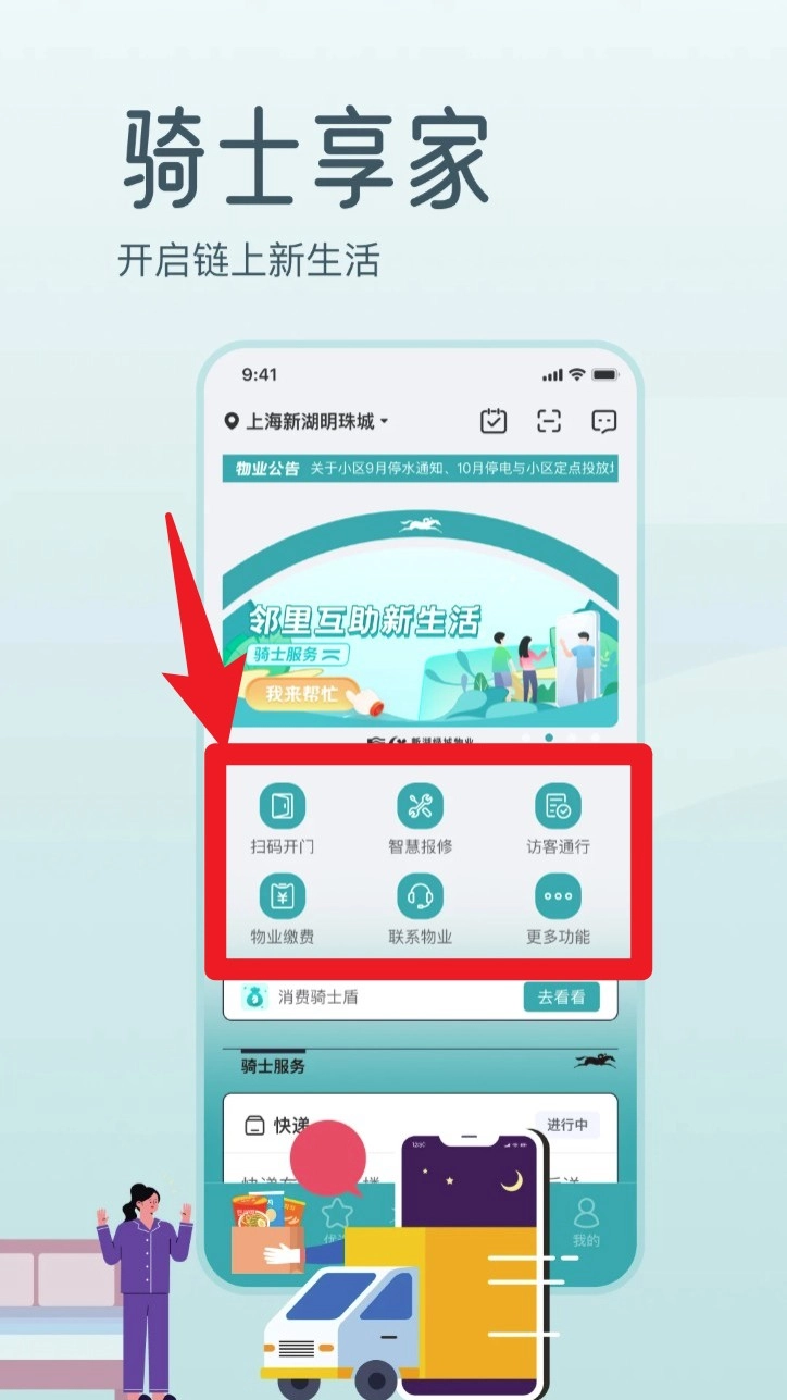 骑士享家作为一款助力享受智慧生活的服务工具,它通过连接物业、居民、商户等各方参与者,依托区块链技术,打造出为住户提供品质生活的智慧社区服务平台。