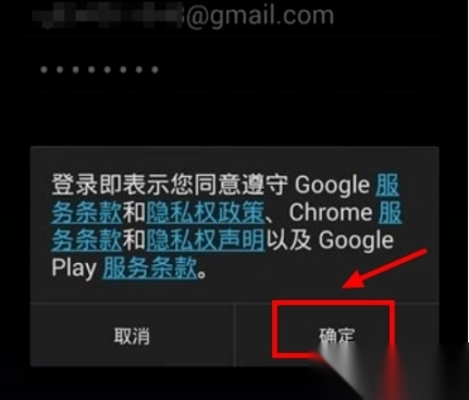 7、输入Google帐户名和密码之后,登录时将会弹出“服务条款”,