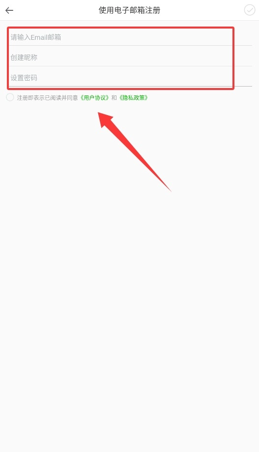 2、在注册界面填写常用电子邮箱、设置个人昵称及登录密码,勾选同意条款后系统将自动完成账号创建。