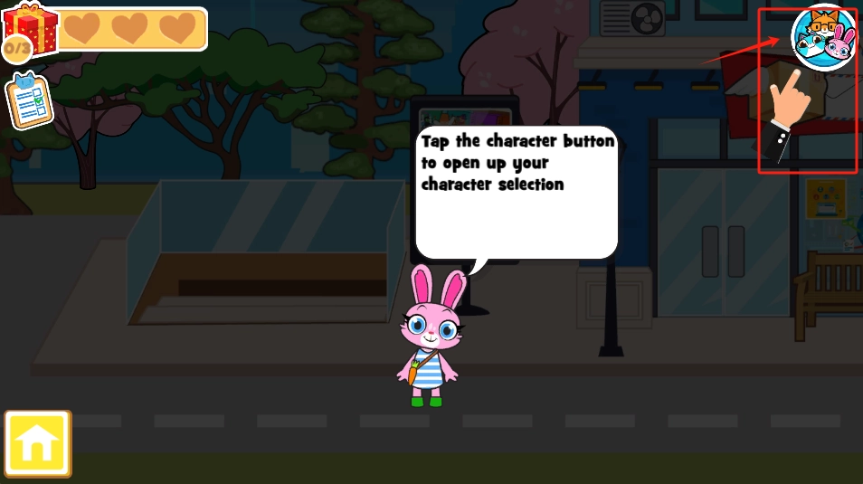2、点击右上角带红圈的角色按钮,选择要玩的宠物角色。