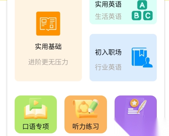 2. 首页推送丰富多样的学习方式,涵盖实用英语以及基础学习等内容。