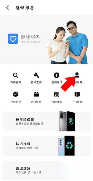 1. 先下载魅族商城app,下载完成后打开该应用,接着点击魅族商城app里的魅族服务按钮。
