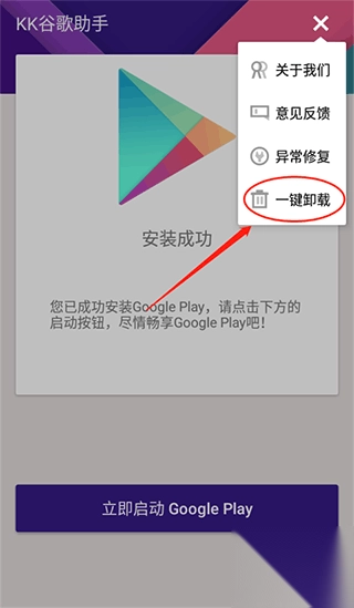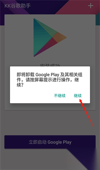 1、启动"Kk谷歌助手",并根据提示一键安装Google Play四件套。