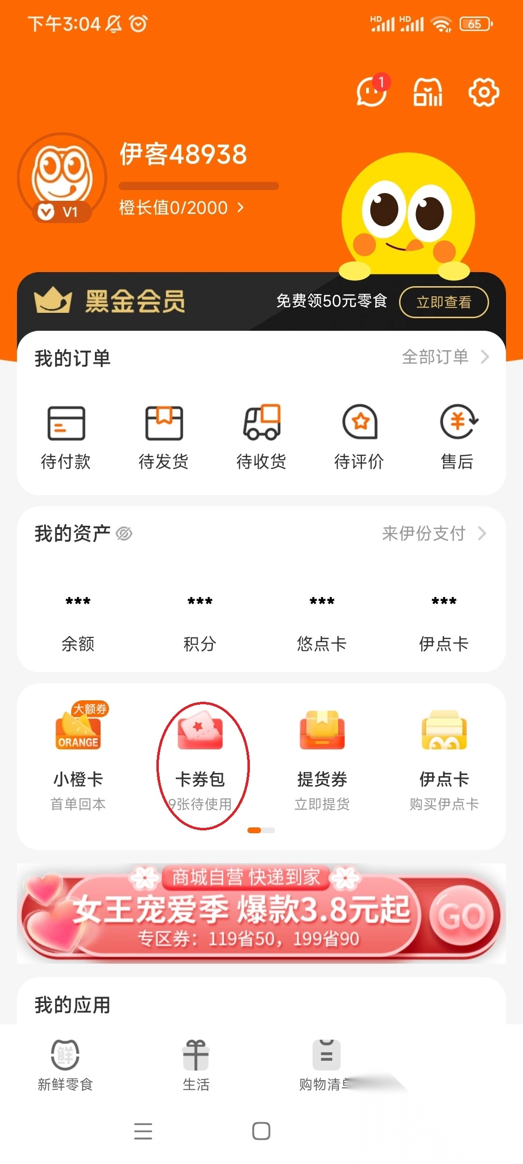 2、里面有你领取的所有的优惠劵。