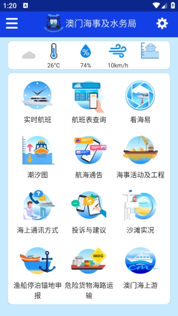 -此外,程式首页会提供即时气温、风速以及实时潮汐高度等信息,以便海事业界能够更好地规划航行与作业。