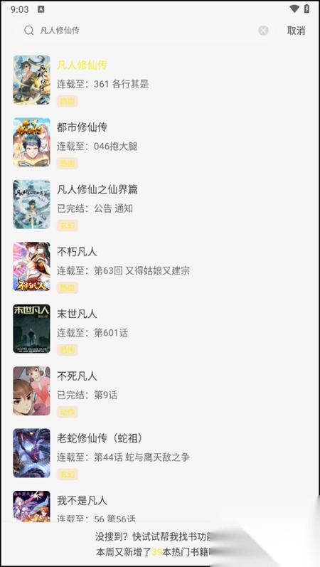 2、小编在这里输入相应的漫画作品,比如说:凡人修仙传。