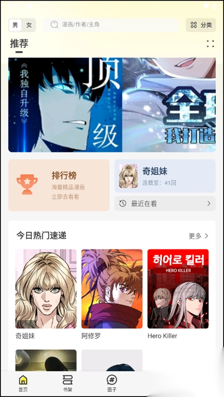 绘梦轩漫画app官方版在首页上加入了一系列非常贴心的板块,包括了:高分推荐、实时排行榜、男女频等等,这样一来就能够帮助用户轻松发掘出各种宝藏漫画,可以尽享丝滑漫画阅读体验。同时,该软件还加入了圈子互动功能,用户可以邂逅到形形色色的漫友相互之间能够讨论漫画后续走向以及向作者催更。此外,该软件也支持离线下载操作,可以将漫画缓存在本地,即便没有网络也可以正常加载阅读。