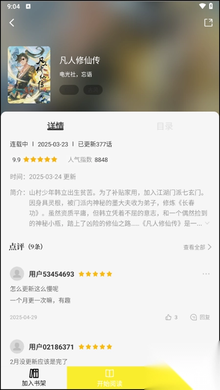 3、点击进入之后,我们就能够看到相应的详情界面,我们可以直接点击底部的开始阅读按钮。