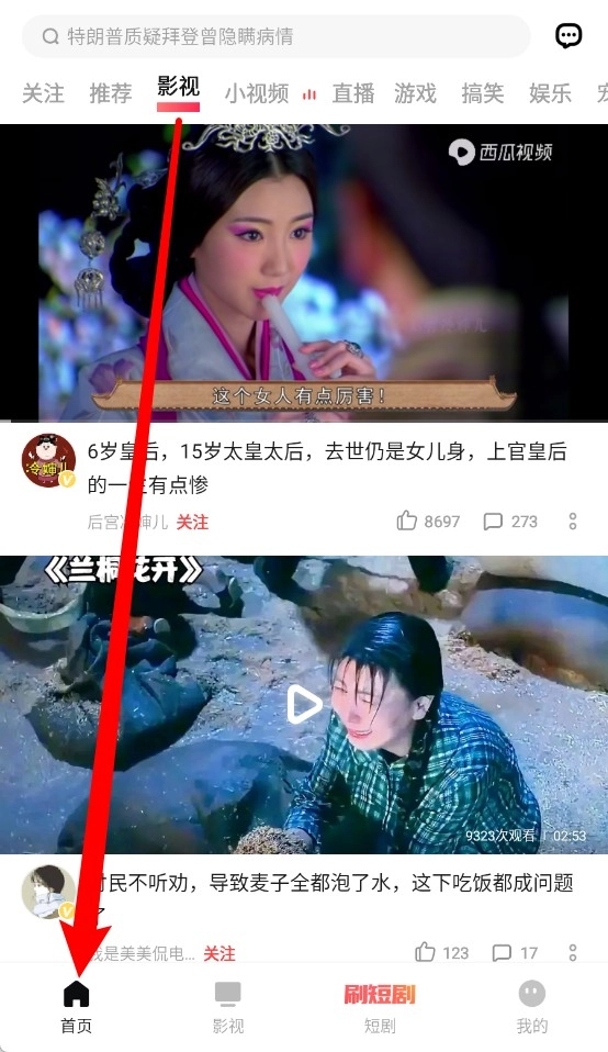 4、点击底部导航栏“影视”图标,切换回电影电视剧推荐频道主页。