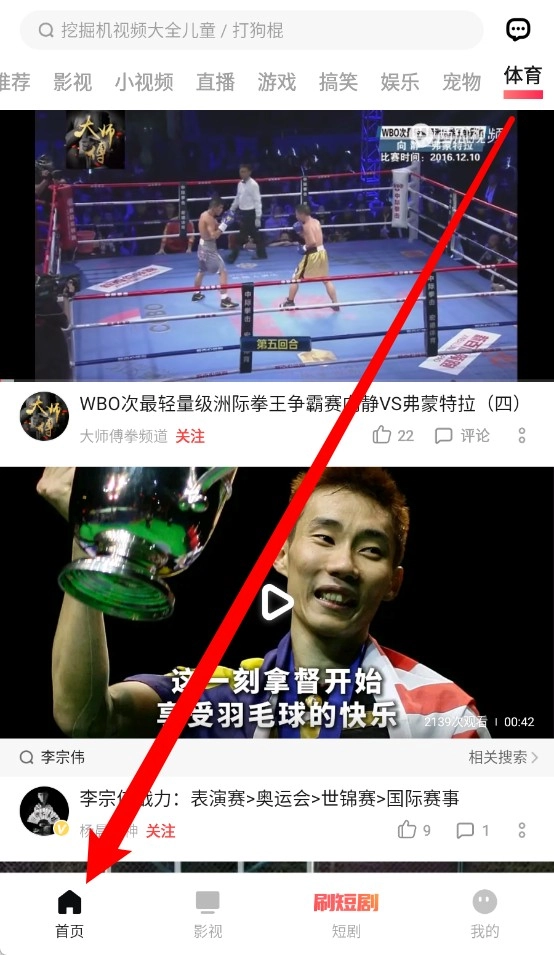 3、在顶部标签页左右滑动选择“体育”栏目,查看各类体育赛事内容。