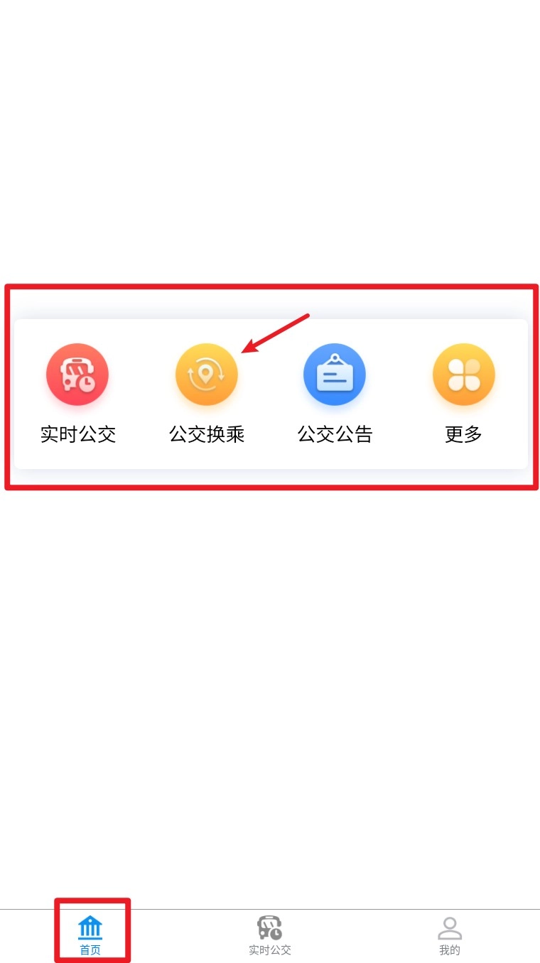 3. 返回首页点击“公交换乘”功能,进入起点与终点设置界面,开始路线规划。
