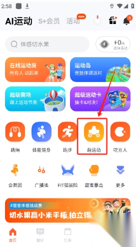 1、在首页寻找并打开【趣运动】图标。