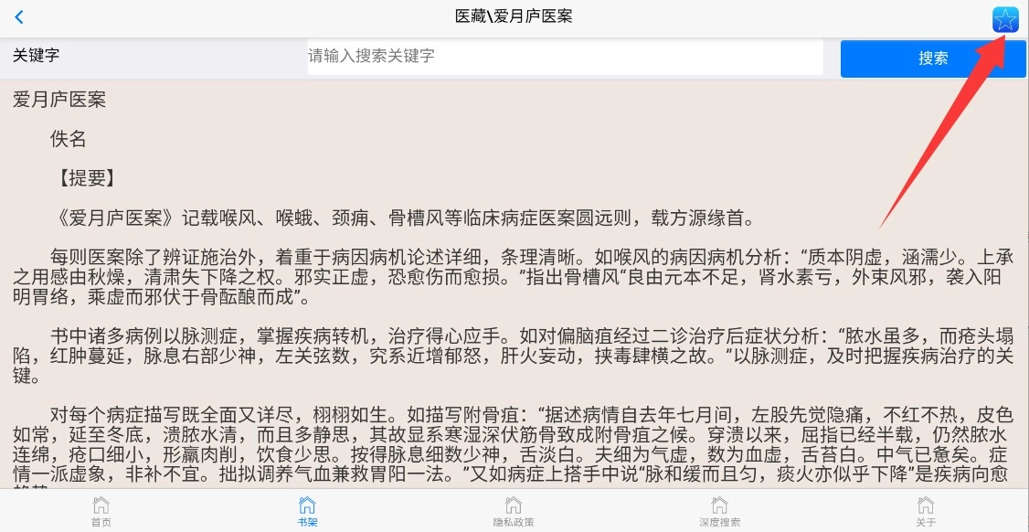 3、在阅读文献的时候,点击右上角的收藏图标,就能把当前文献添加到个人书架,便于后续查看。