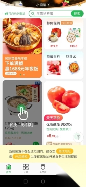 无论您钟情于何种美食,只需提前一天预定,随后便会准时送货上门。倘若您喜爱新鲜蔬菜,这里主要供应新鲜蔬果、蛋肉粮油等各类生活食品,质量严格把控,运输层层把关,全力保障您的食用安全,让您放心购买。同时,还有健康菜谱推荐给您,购买的食材还帮您切洗包装,既便民又安心。有需要的朋友,快来下载吧!