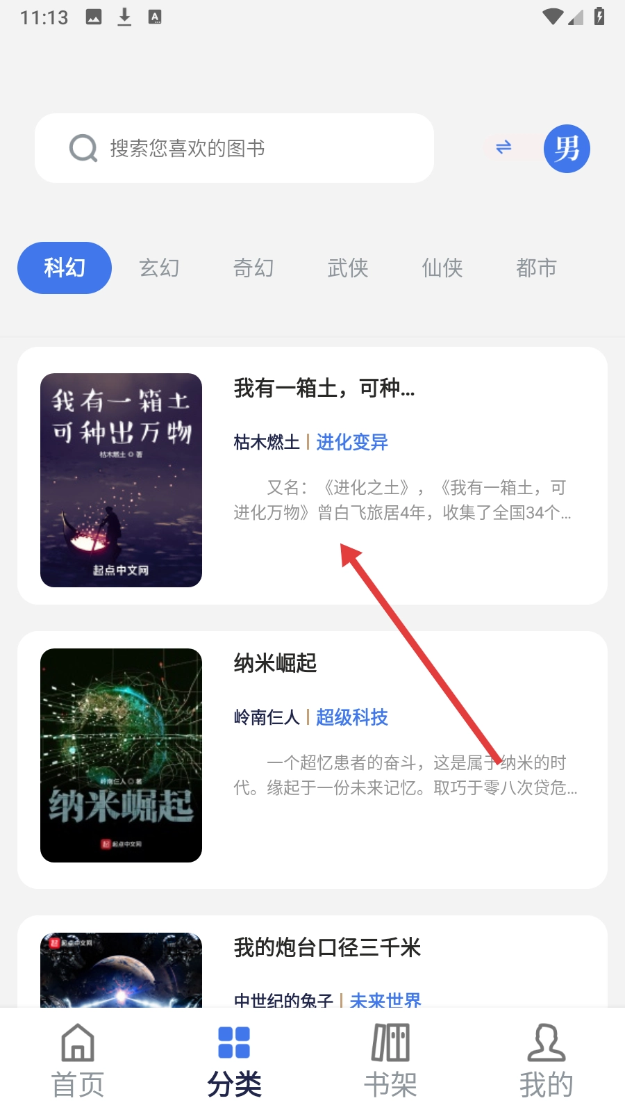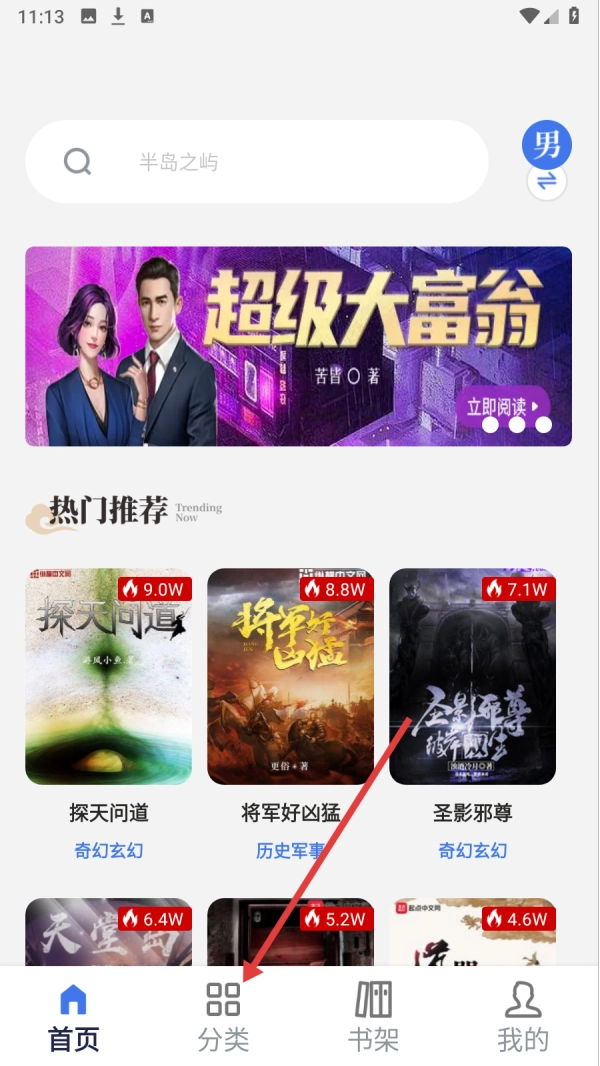 1、首页点击【分类】,进入图书分类界面。