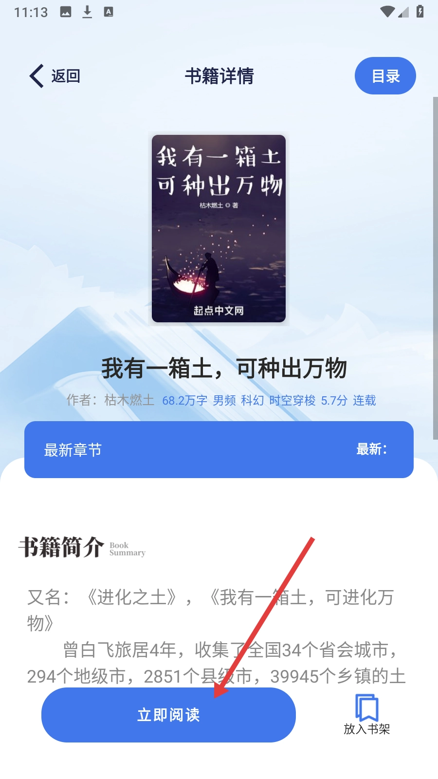 4、详情页点击【立即阅读】,即可开启小说阅读体验。
