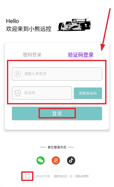 请输入手机号码、验证码,勾选“已阅读并同意《服务协议》及《隐私政策》”,随后点击“登录”按钮即可完成操作。