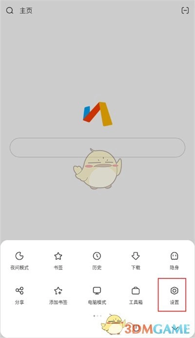 1、首先打开via浏览器,进入软件后点击界面右下角【三】选项;