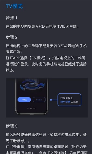 2、【TV模式登录】当处于配备电视设备的场景时,用户能够在智能电视上安装 VEGArena 云电脑应用。接着通过该应用的“TV模式登录”来完成账户登录。电视成功连接云电脑后,手机或平板瞬间转变为虚拟键盘、鼠标以及游戏手柄,从而可以对电视上的云桌面实施操作控制。如此一来,电视摇身变成电脑,手机/平板成为游戏手柄,随时畅享各类游戏大作!