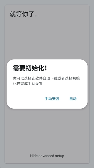 2、 安装完成后启动app,启动时关闭WiFi,Vetras VM会弹出一个让您配置的窗口,选择手动安装