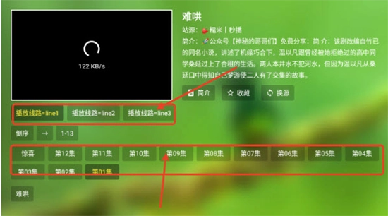 3、挑选一个并点击,进入播放页面,在此页面能够选择不同的播放线路。