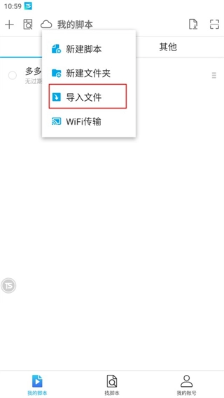 2. 选中想要导入的文件,点击右上角的「导入」按钮,就能将脚本文件导入到触动精灵的脚本目录当中。