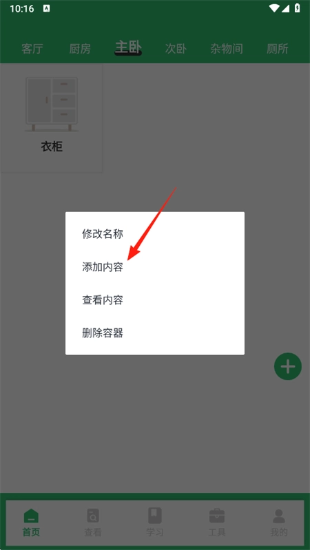 2. 点击空间,所有物品的信息都在此处,下方标注着容器名称。