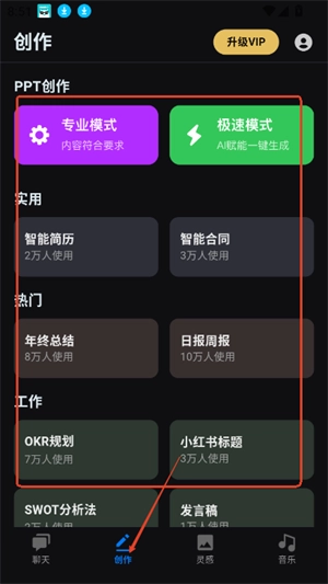 3、点击进入创作板块,该板块提供专业模式与极速模式,您可依据自身创作需求进行选择。