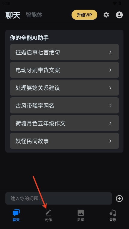 2、点击底部的【创作】