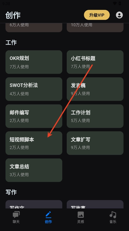 3、然后选择【短视频脚本】工具进入